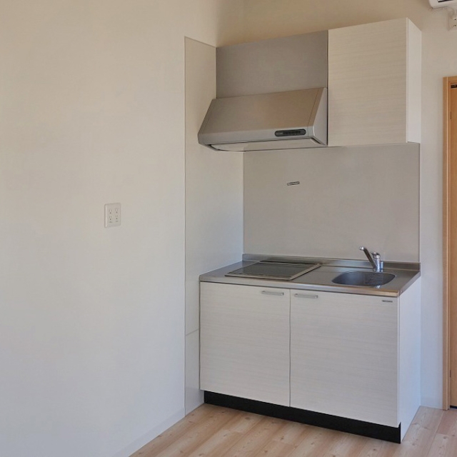 キッチンには収納棚もつけて、収納スペースを充実にしました。
