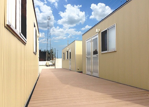 事務所用、詰所用、シャワールーム・キッチン用、とそれぞれの用途に応じた全三台のトレーラーハウスです。