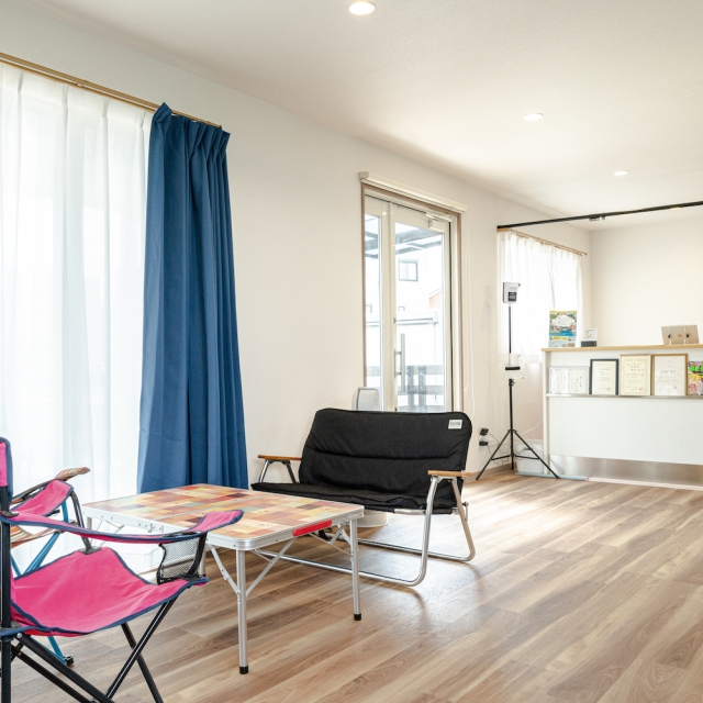 お客様スペースはキッズスペース等へとレイアウトを変更可能なように、造作を少なく施工