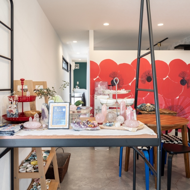店内は入った瞬間に花柄を大胆に使った鮮やかな壁紙が
