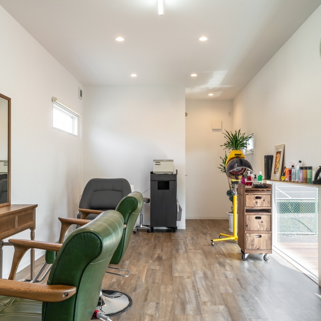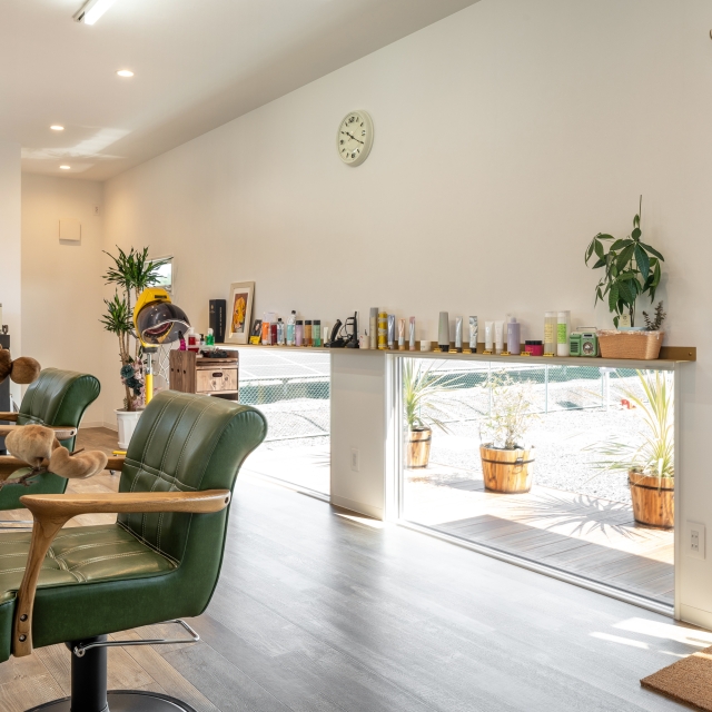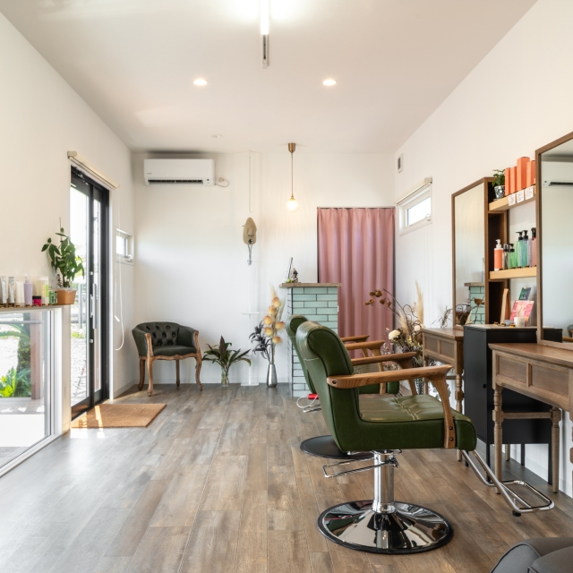 セット面2台、シャンプー台が余裕で設置できゆったりとした店内になっております。